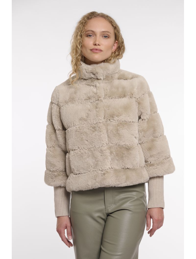 Dámský krátký kožíšek s odepínacími rukávy - špinavě bílá ( birch)